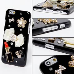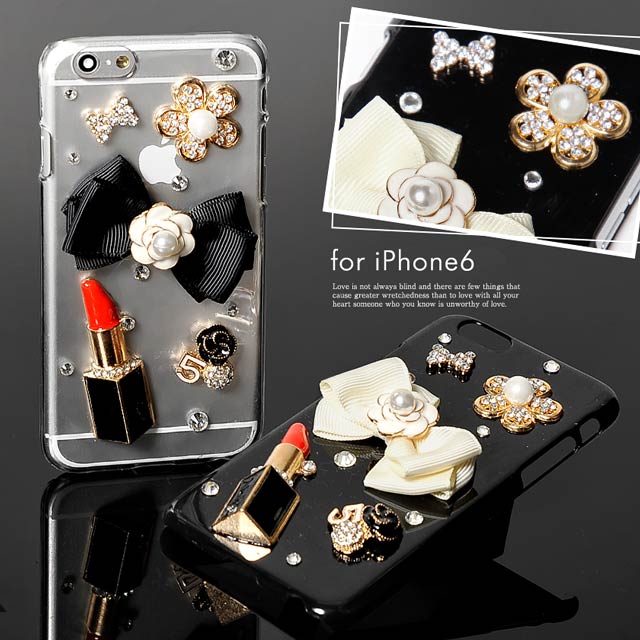 iPhone6用のシャネル風ケースが登場☆リボンやリップスティックなどのモチーフは立体感があってカワイイ♪ひとつひとつのパーツが存在感のあるケースです★