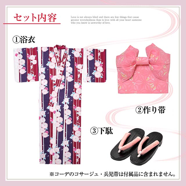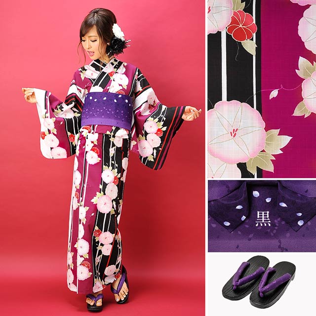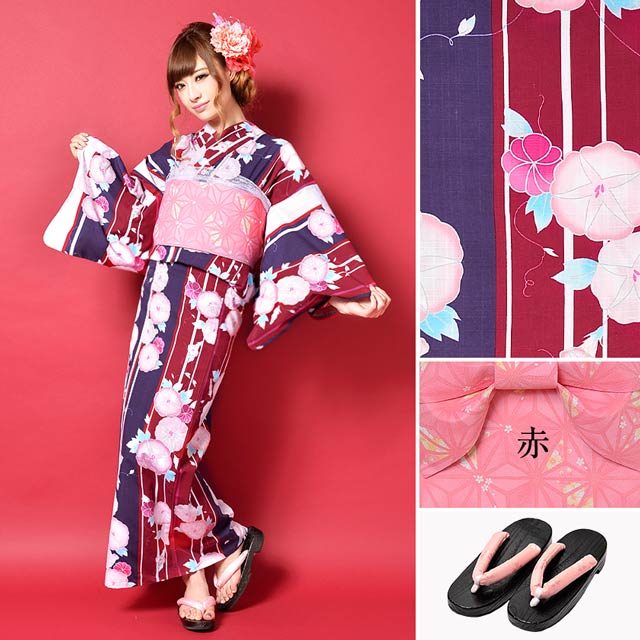 【JELLY7月号掲載】あさがお×ストライプ模様/浴衣3点セット