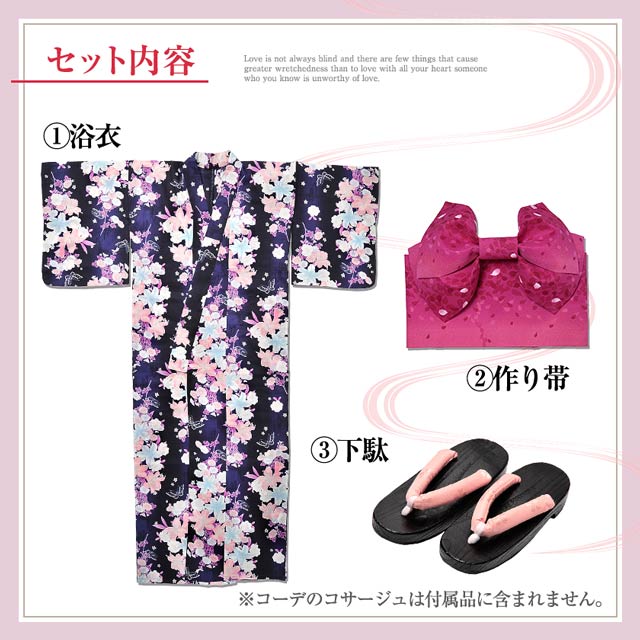 さくら×百合模様/浴衣3点セット