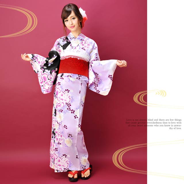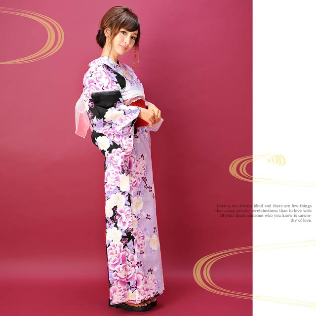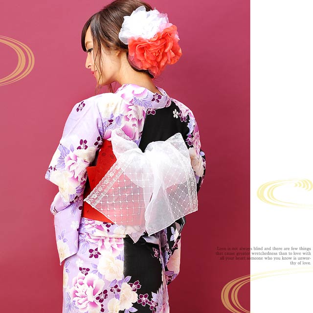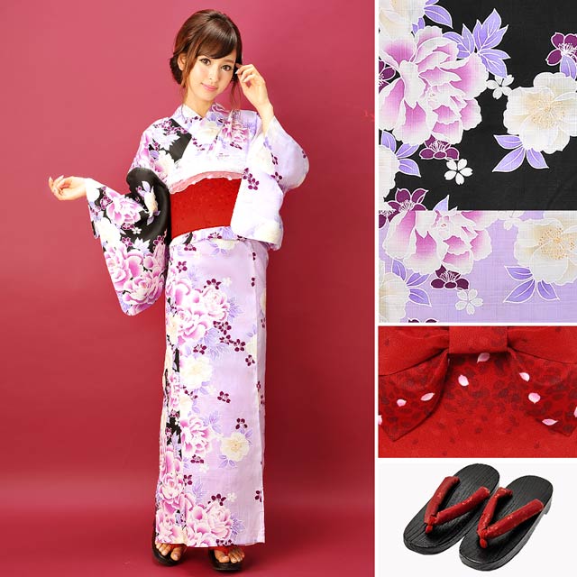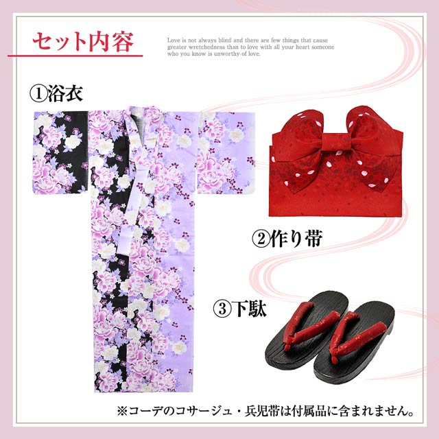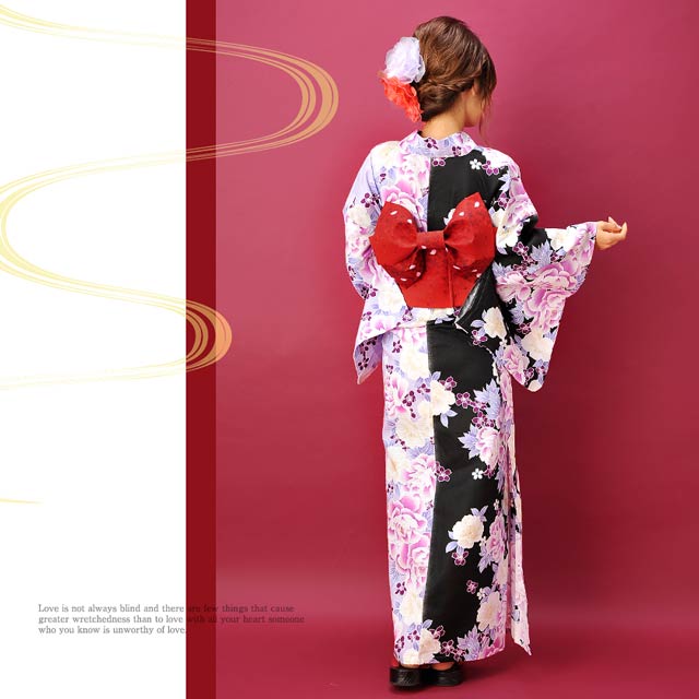 バイカラー牡丹模様/浴衣3点セット