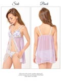 ドットのエンボス加工が施された薔薇柄のロマンティックなシフォンベビードール♪パステルカラーの淡いローズ柄で乙女チックな雰囲気に仕上げました♪前開き部分にはホワイトレースを飾り上品な印象に。ショーツは可愛いイメージとはギャップの色っぽいWライン!!甘さたっぷりの小悪魔ベビードールはお泊まりデートにオススメの1着です♪