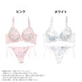 淡いフラワープリントが描かれたフェミニンなブラセット。 ブラの縁をケミカルレースで装飾しエレガントさもアップ。 ショーツは思わず解きたくなる紐ショーツ仕様。