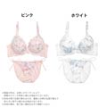 淡いフラワープリントが描かれたフェミニンなブラセット。 ブラの縁をケミカルレースで装飾しエレガントさもアップ。 ショーツは思わず解きたくなる紐ショーツ仕様。