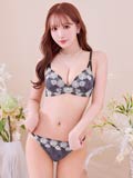 ディープ調のクラシカルな雰囲気漂うローズ刺繍が大人な女性の魅力引き立つランジェリー。透け感のあるスカラップレースデザインもアクセントに◎ 三角ストラップで胸元をしっかりキープ出来る1着です♪