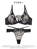 12/12新作!ノワールフラワーレースアップブラジャー&バック透けTバックショーツ[激売れ]