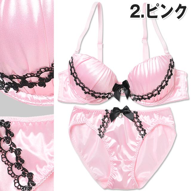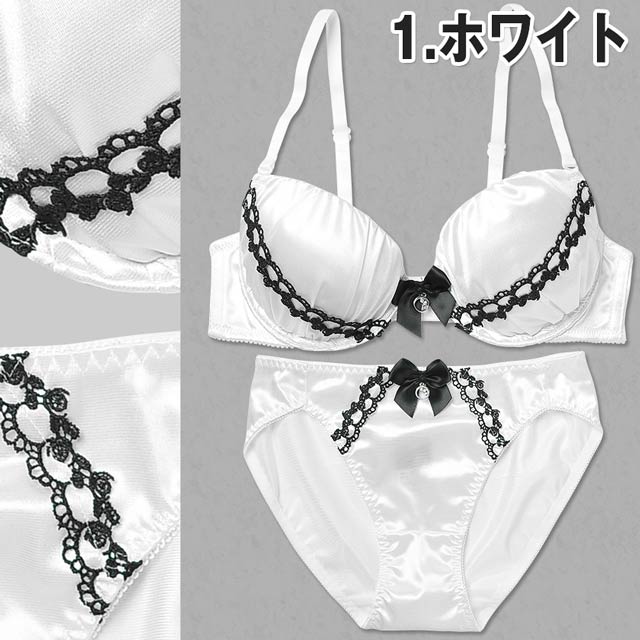 サテン素材×刺繍レースブラジャー&ショーツ/CUTE