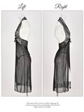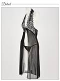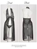 フロントオープンシースルーホルターネックロングベビードール