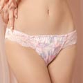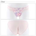 淡いフラワープリントが描かれたフェミニンなショーツ。サイドをフリルで飾り、気になる腰周りを可愛くカバーしてくれます。