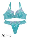 【Reinest】フローラルローズ刺繍ブラジャー&Tバックショーツ