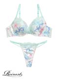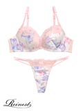 【Reinest】パステル水彩サテンブラジャー&Tバックショーツ