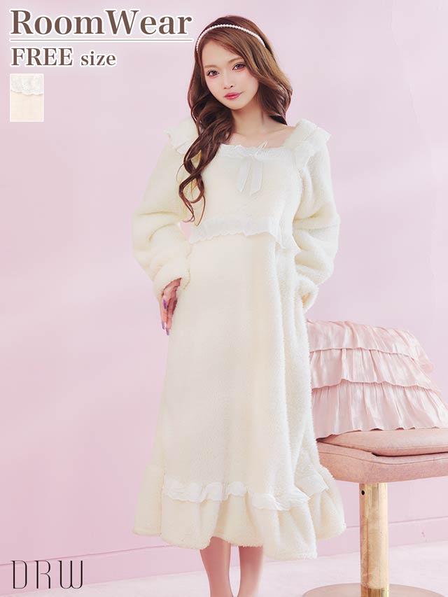 リボンを通したレースやドットチュールフリルをあしらったビスチェ風デザインのランジェリー。